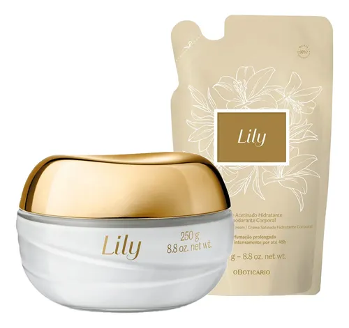 O Refil Creme Acetinado Hidratante Desodorante Corporal Lily oferece a mesma fragrância sofisticada e hidratação poderosa em uma embalagem prática e econômica. Ideal para repor seu creme favorito sem abrir mão da qualidade.